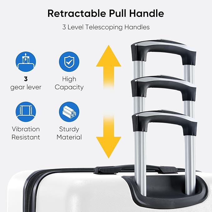 - Durable & Scratch-Resistant: Made from high-quality ABS hard shell, this suitcase is impact-resistant, lightweight, and built to withstand travel wear and tear. The reinforced aluminum telescopic handle is sturdy and resistant to bending, ensuring long-lasting durability.