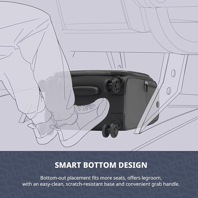 - Good Design for Hassle-Free Travel: Underseat Luggage Featuring a sturdy carry handle for easy lifting and a smart sleeve for attaching to upright luggage handles, our underseat bag makes travel effortless