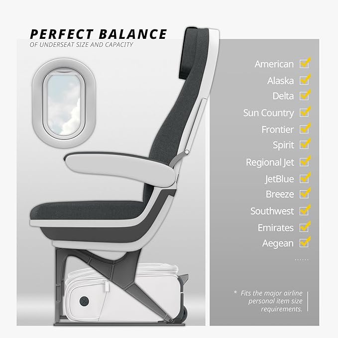 - VERAGE Compact Underseat Perfect for Economy Travel: Specifically designed to fit under airline seats, our compact underseat bag is the ideal companion for economy flights, making your travel experience hassle-free