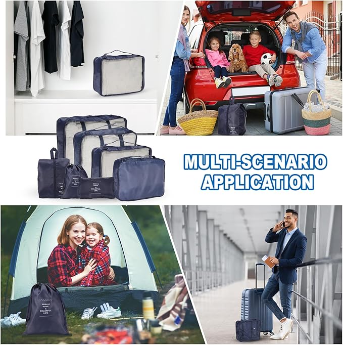 uxcell 7Set Travel Packing Cube, Travel Bags Organizer Luggage Organizer Bags Lightweight Compression Cube Travel Essentials with Shoe Bag for Outdoor Carry on Suitcases, Navy
