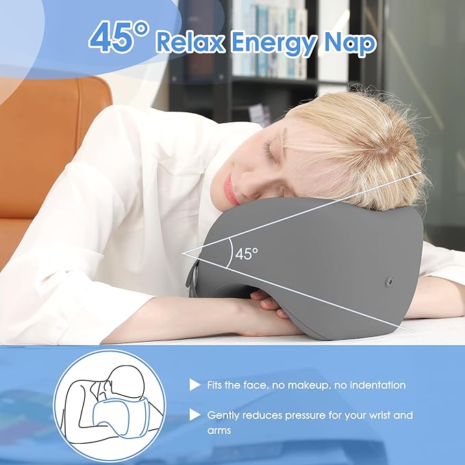 - 2-in-1 Pillow: As an neck pillow airplane, this memory foam travel pillow can better support your neck and shoulders, prevent your head from falling forward, and relieve neck pain during travel. As a napping pillow, it is designed with a perfect 45° angle, allowing your head and neck to naturally lean forward, minimizing arm pressure, reducing hand numbness, and providing a soothing sleep experience