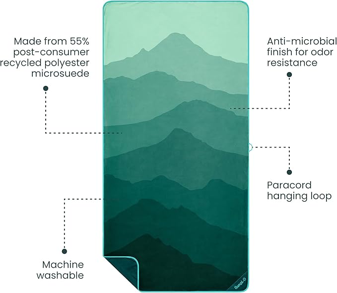 Rumpl Tech Towel Quick-Dry Towel for Travel, Beach, and Camp, Cascade Fade - Green