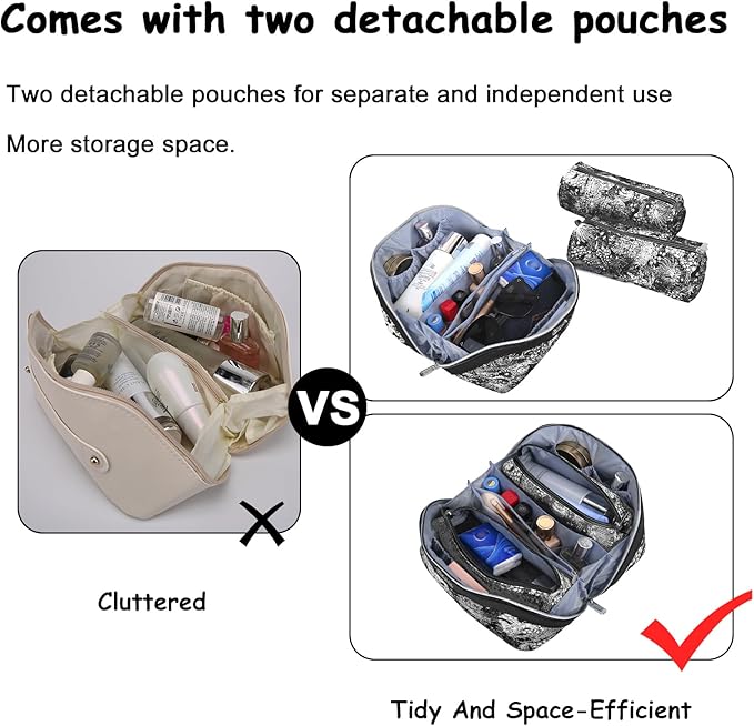 - 3 Pcs Makeup Bags Set: This travel cosmetic bags set comes with two detachable zipper small bags. Five precision-crafted compartments keep skincare and cosmetics flawlessly sorted, designed for seamless transitions between travel, business trips, outdoor adventures, and leisure escapes.