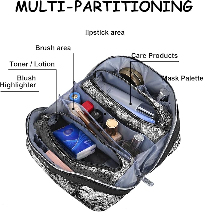 - Multifunctional Travel Makeup Bag: An excellent leather waterproof cosmetic bag is perfect for any setting - whether on your dresser, in the bathroom, outdoors, in the car, on the train, or packed in your luggage. It keeps your makeup organized and easily accessible, so you can meet your beauty needs anytime, anywhere.