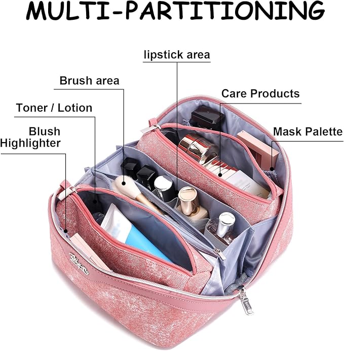 - Multifunctional Makeup Bag for Travel: Designed to be dirt-resistant and waterproof, this makeup travel organizer bag is suitable for various settings, whether it's on your dresser, in the bathroom, outdoors, in the car, or packed in your luggage. Keep it by your side to meet your makeup and touch-up needs anytime, anywhere.