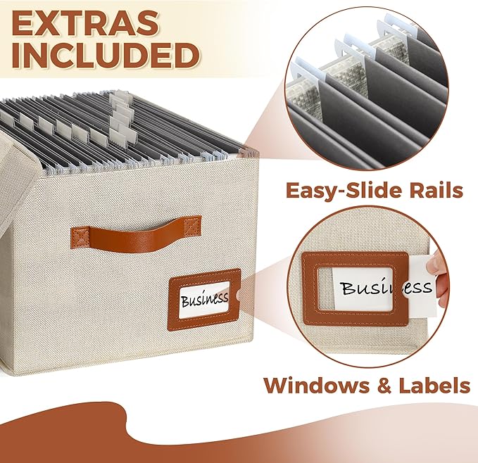 - Stylish & Durable - Made from premium linen fabric, this hanging file folder organizer box combines durability with a sophisticated look. A decorative alternative, enhancing any home and workspace.