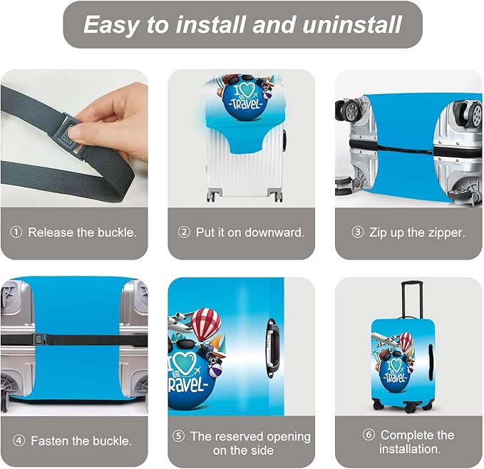 - Easy to Install: Double-stitched all over, full of flexibility and elasticity, your suitcase will stay closed during the trip. There is a big opening at the top for the handle, and zippers on both sides for the side handles. The one-of-a-kind design makes it simple to install and uninstall.