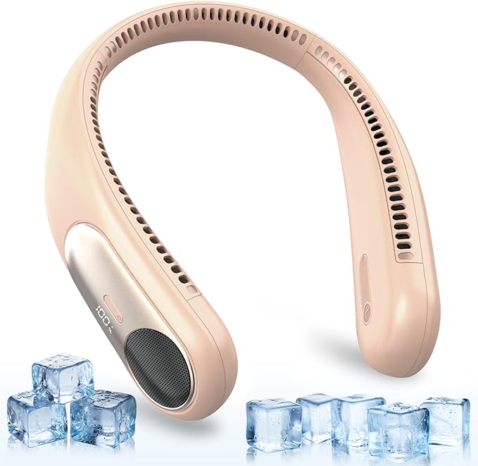 - 【360° Surround Cooling & Ultra-Safe Design】: Experience all-around cooling with our upgraded neck fan 360° airflow. The bladeless design ensures safety for children, the elderly, and long-haired users, eliminating the risk of hair entanglement or accidental injuries. Perfect for outdoor activities, travel, and daily use. This neck fan is also a perfect gift for birthdays, father’s day, mother’s day, Christmas or any occasion.