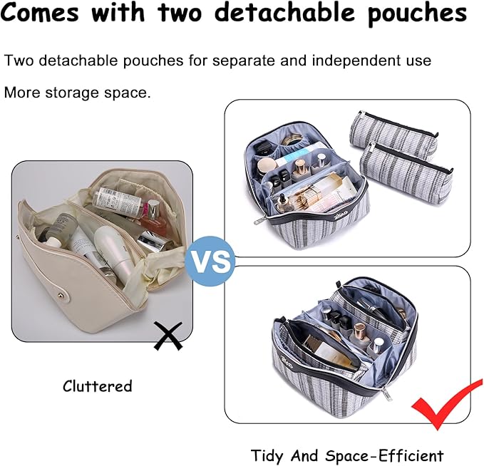 - 3-Piece Travel Makeup Bag Set: BOYATU makeup bag for women includes two removable zippered small bags and five smart compartments to neatly store all your skincare and makeup essentials.Ideal for travel,business trips,vacations,camping,or picnics.This versatile set keeps everything organized on the go.