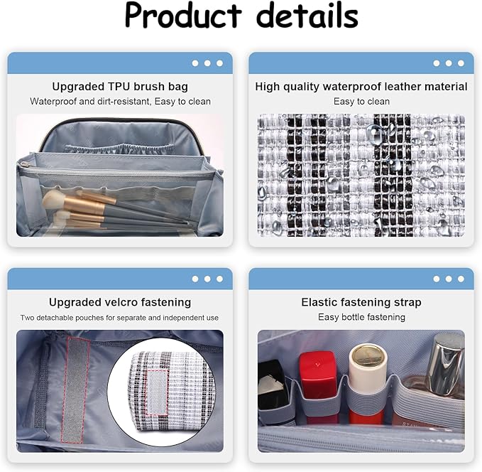 - Premium Vegan Leather Makeup Bag: Crafted from luxuriously soft,waterproof vegan leather,this lightweight makeup organizer bag wipes clean effortlessly and resists stains without fading.Stain-resistant material stays flawless for years,not months.
