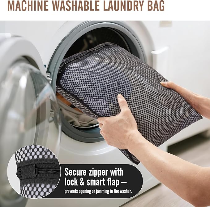 - Versatile Laundry Bag: Made with breathable mesh, the included laundry bag doubles as a washing bag—suitable for tossing straight into the washing machine. A smart zipper guard keeps it securely closed during cycles, reducing fabric tangling and wear to extend the life of your clothes.