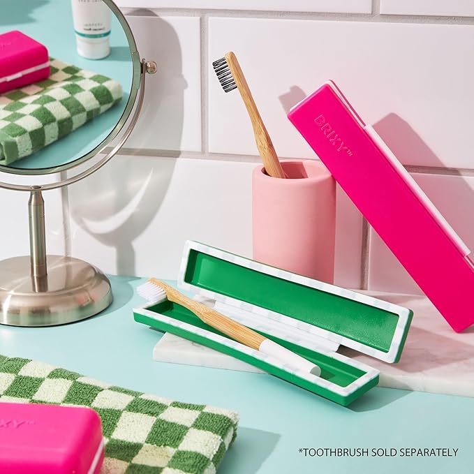 - NON-TOXIC MATERIAL – 94% of plastic ends up in landfills, but BRIXY is on a mission to change that. That’s why we created these colorful and fun toothbrush travel cases without any plastic packaging. Silicone is more durable, lasts longer and is free from harmful chemicals such as BPA.