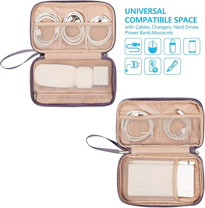 NISHEL Travel Cord Organizer Case, Double Layers Tech Electronic Bag, Essentials for Charger, Cable, Phone, Flash drive, Medium, Purple