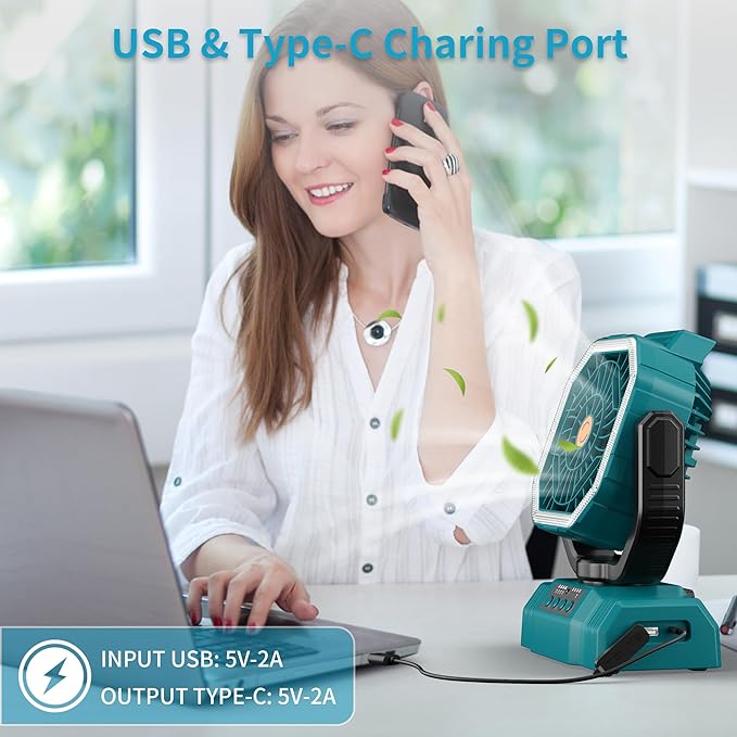 - Whisper quiet & powerful airflow - Equipped with the latest brushless motor technology and ultra-thin fan blades, this portable fan rechargeable operates quietly at less than 28 dB while delivering powerful airflow. With 4 wind speed options, you can adjust the airflow in your tent for optimal comfort. The tent fan also features 3 brightness levels for the integrated LED light, making the fan suitable for bedroom, travel, camping