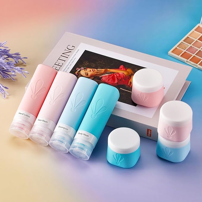 - Premium Food-Grade Silicone & PET: our BPA Free travel toiletry containers are safe to use not only for your cosmetic liquids like shampoo, conditioner, facial cream or body lotion. but also ideal airplane travel essentials for your vitamins, pills or jewelries. Plus they are dishwasher-safe for reuse.