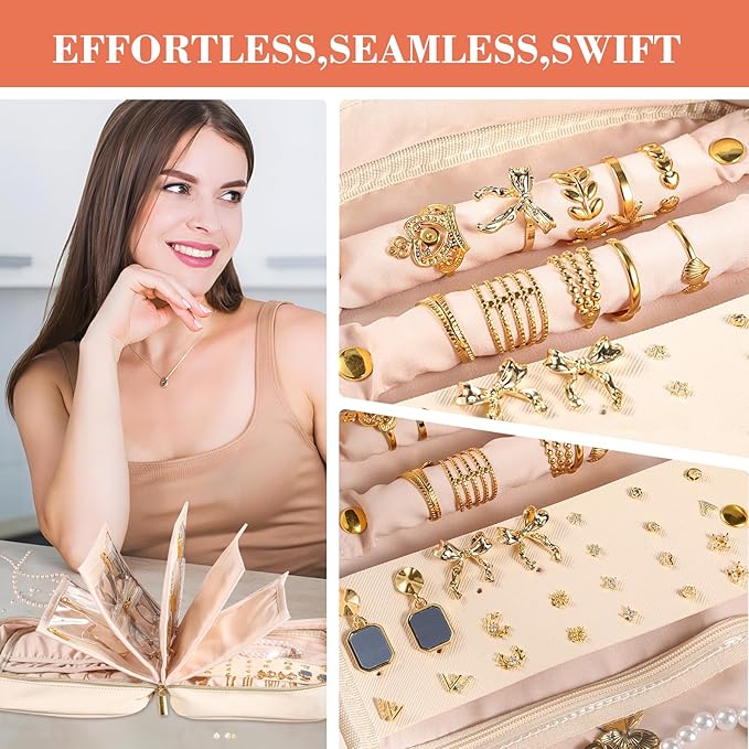 - 【Adjustable Loose-Leaf Design】Customize your storage with the adjustable loose-leaf binder! 5 removable transparent pages let you add/remove pages to fit your travel needs—organize by size, style, or quantity. Arrange jewelry for practicality and visibility, making your entire collection easy to see and access.