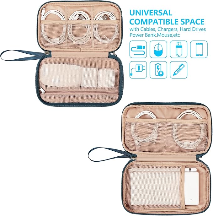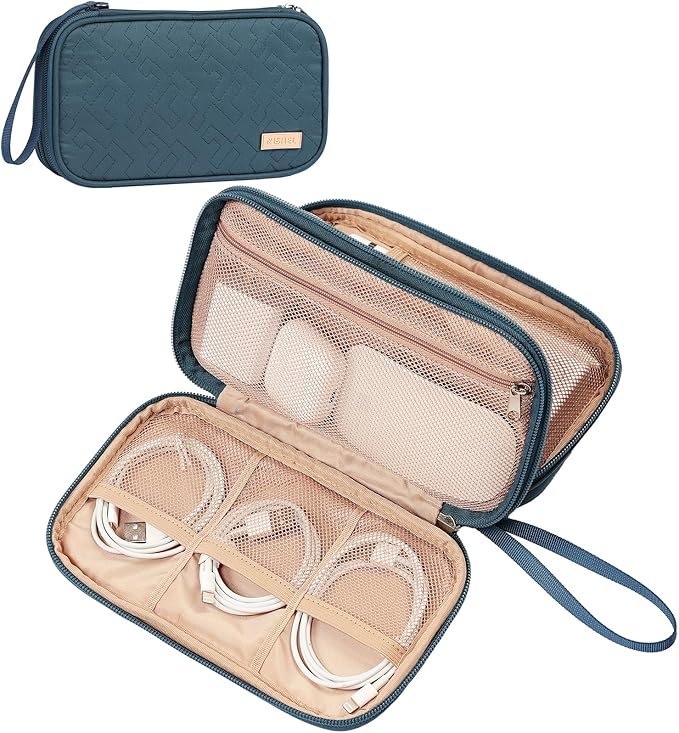 NISHEL Travel Cord Organizer Case, Double Layers Tech Electronic Bag, Essentials for Charger, Cable, Phone, Flash drive, Medium, Lake-Blue