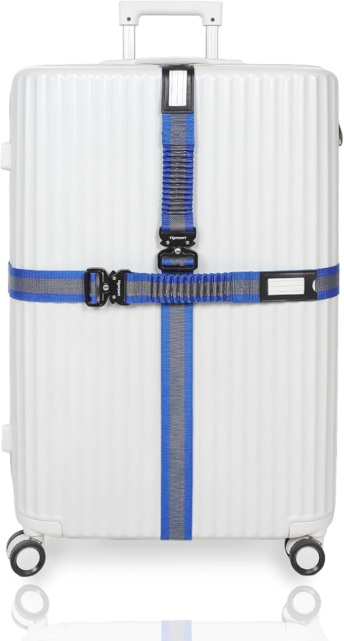 - Better Security Luggage Belts: Vigorport suitcase strap has its unique design. Our travel straps for luggage consist of a nylon strap and a same material high elastic stretch part. You can adjust the tightness of the travel belt as you need, keep your suitcases tightened. Our luggage straps TSA approved can improve safety during long-distance travel