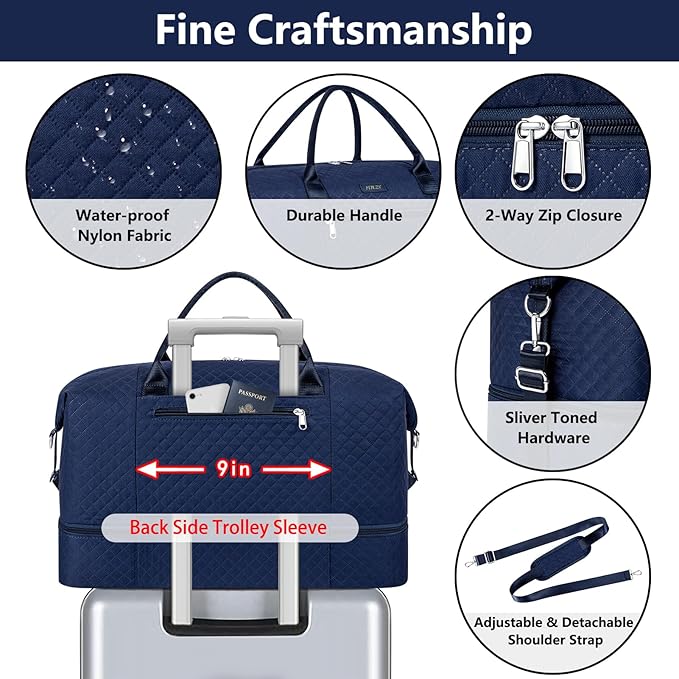 - [Wide Application Travel Bag & Perfect Service] Use it as a weekend travel bag, carry on bag, overnight bag, business traveling bag, personal item travel bag, mommy bag for hospital, gym bag, suitable for family vacations, weekend trips, overnight stays, business trips, sports and fitness, beach vacations and camping. Great gift choice for your families, friends and lover. If you find any problems after receiving the travel bag, please contact us for free return/refund service.