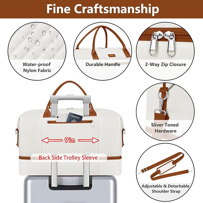 • [Wide Application Travel Bag & Perfect Service] Use it as a weekend travel bag, carry on bag, overnight bag, business traveling bag, personal item travel bag, mommy bag for hospital, gym bag, suitable for family vacations, weekend trips, overnight stays, business trips, sports and fitness, beach vacations and camping. Great gift choice for your families, friends and lover. If you find any problems after receiving the travel bag, please contact us for free return/refund service.