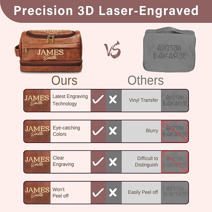 - â¤ď¸ăPrecision 3D Laser-EngravedăElevate your leather travel bags for men with our precision 3D laser-engraving. Unlike ordinary bags with fading designs, our technology ensures vibrant, fade-resistant patterns. Every detailâfrom crisp text to intricate motifsâfeatures a sophisticated bas-relief finish, adding tactile depth and a touch of luxury to your travel essentials.