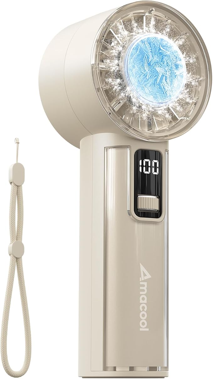 AMACOOL Handheld Fan with Ice Cooler, Mini Portable Fan Rechargeable, 18Hrs Cooling, 0-100 Adjustable Speed, Small Yet Powerful, Personal Hand Fans for Travel, Beach, Outdoor, Makeup, Gifts for Women
