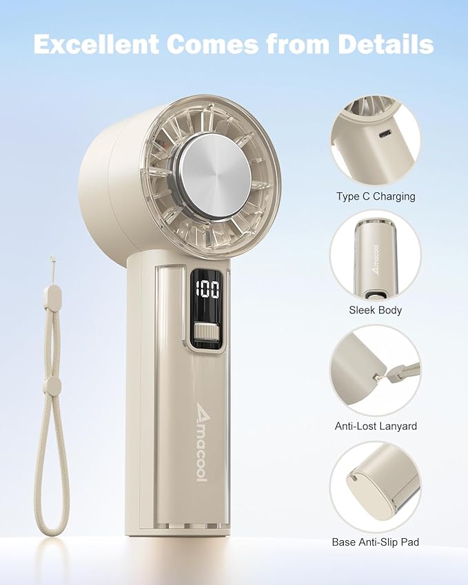 - Thoughtful Gift Choice: With a smooth, refined finish and ergonomic grip, this handheld turbo fan combines premium design and exceptional functionality. Using the latest cooling tech, it's the perfect companion for makeup, lash drying, skincare, and more. Weighs just 218g, this hand held fan is light in the hand and easy to carry; Its compact body fits effortlessly into your palm, makeup pouch, purse, or even your pocket; A thoughtful, stylish gift for women and men