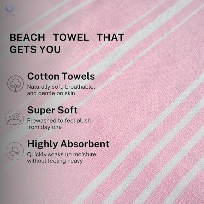 Cotton Turkish Beach Towel with Towels Oversized 36"x72" Pool Absorbent Extra Large Quick Dry Sand Travel Towel (Peony Plush, 4 Pack)