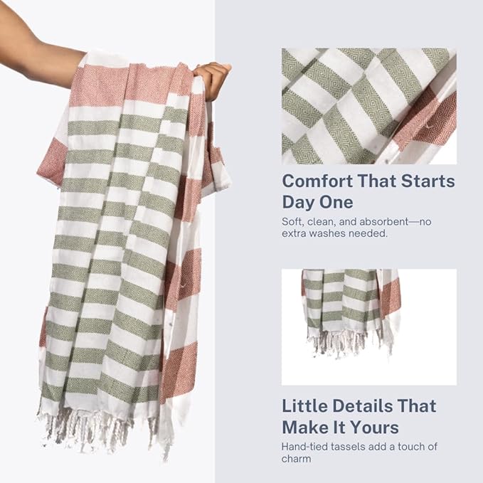 - 🌴 Sand-Free, Quick-Drying & Stylish in Every Shade: Enjoy the beach without the mess—9Threads Turkish towels are sand-resistant and fast-drying, making them your perfect companion for sun, surf, and travel. Available in vibrant, eye-catching colors and bundle options of 2, 4, or 6, they suit every style, space, and occasion—whether for family trips, bathroom upgrades, or thoughtful gifting.
