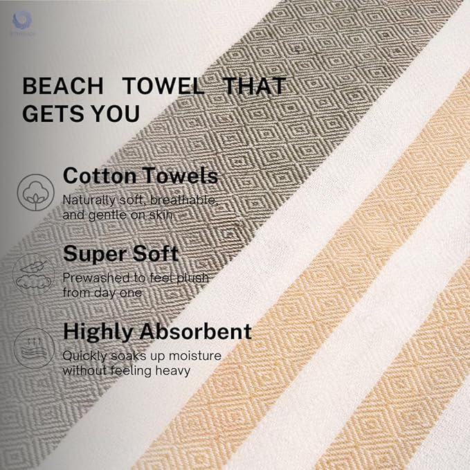Cotton Turkish Beach Towel with Towels Oversized 36"x72" Pool Absorbent Extra Large Quick Dry Sand Travel Towel (Sage & Sand, 4 Pack)