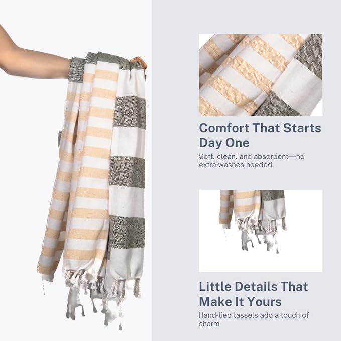 - 🌴 Sand-Free, Quick-Drying & Stylish in Every Shade: Enjoy the beach without the mess—9Threads Turkish towels are sand-resistant and fast-drying, making them your perfect companion for sun, surf, and travel. Available in vibrant, eye-catching colors and bundle options of 2, 4, or 6, they suit every style, space, and occasion—whether for family trips, bathroom upgrades, or thoughtful gifting.