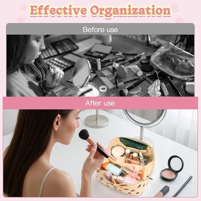- Large-Capacity Makeup Organizer: The letter makeup bag adopts a multi-compartment design, 180°opening design, with elastic pockets and zipper compartments, which can keep your cosmetics organized and allowing easy access to all your items.