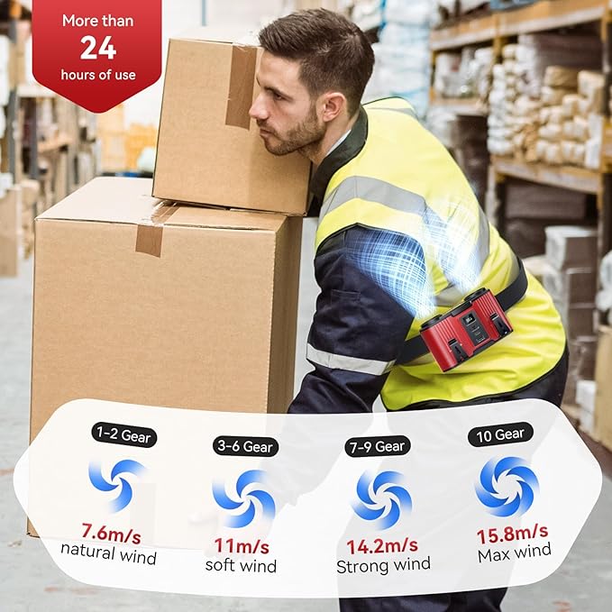 12000mAh Personal Waist Fan, USB Rechargeable Clip The Waist For Working,10 Speed & 23H Cooling and Heatstroke Prevention For Outdoor Travel Camping (Red, 12000mAh)