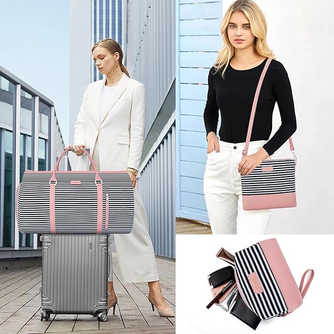 - 4pcs Garment Bag: Experience the ultimate travel solution with our 4-piece convertible set. This all-in-one system includes a large carry-on duffel (21"L x 11.5"W x 13"H) for formal wear, a versatile messenger bag (10"L x 9"H) for daily essentials, a compact toiletry bag (7"L x 4.5"H), and a spacious drawstring laundry bag. Perfect for business trips, weekends, weddings, and extended vacations, it organizes everything you need in one sleek package.