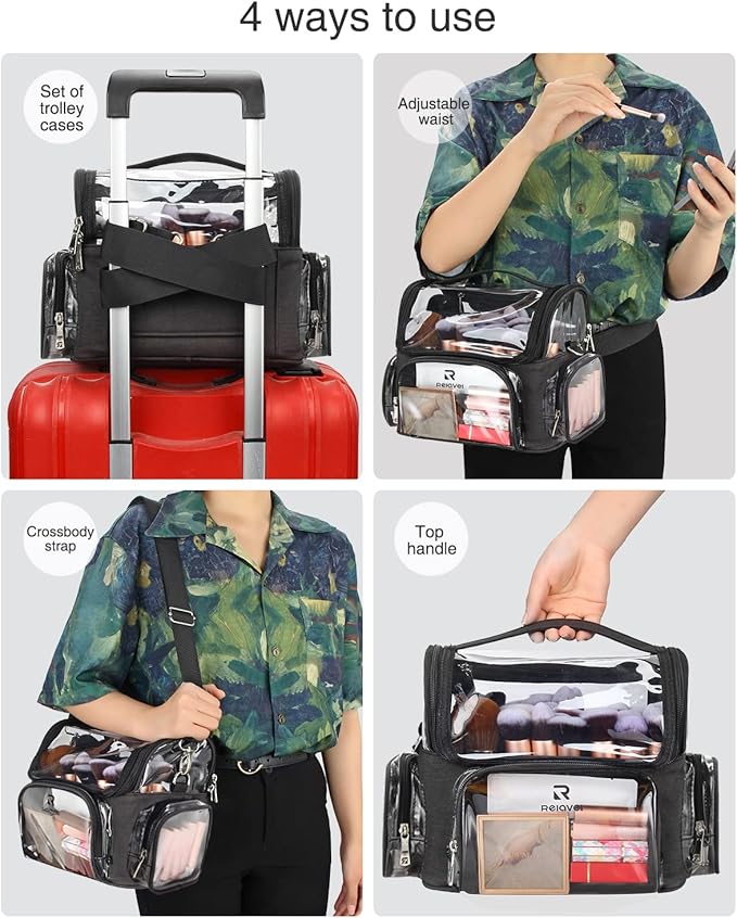 - Roomy And Multi-Compartments: This extra large makeup case comes with a lipstick organizer tray and 4 separate clear bags, the clear cosmetic brush bag has a main compartment, a front pocket and two slip pockets. You can organize them just the way you want, not only keeping everything in place and super organized.