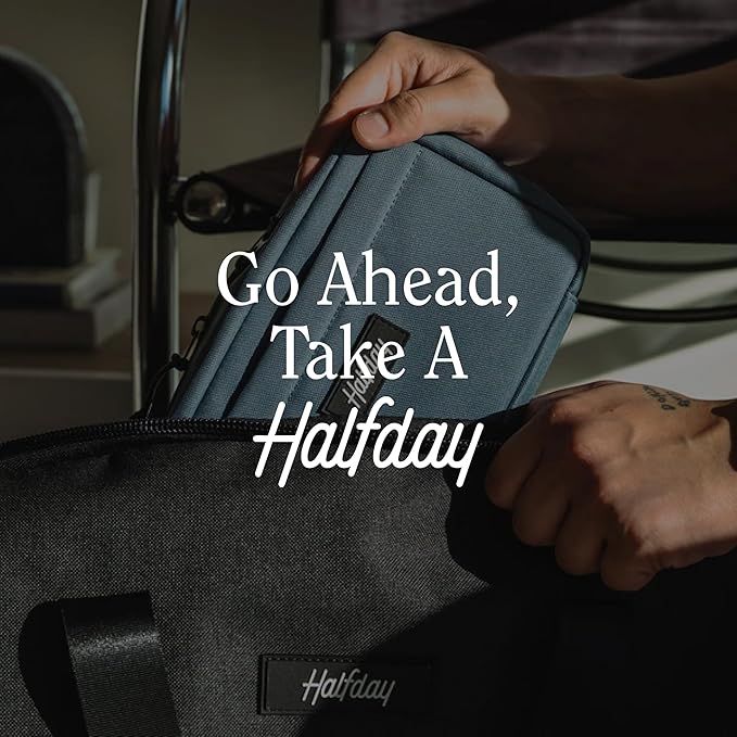 Halfday Sidekick Tech Organizer Kit | Flip-Out Kickstand for Phone/Tablet, Zip-Flat Pouch with Power Mesh & Elastic for Cable & Charger (Splash-Resistant Travel Electronics Accessories Case), Marine