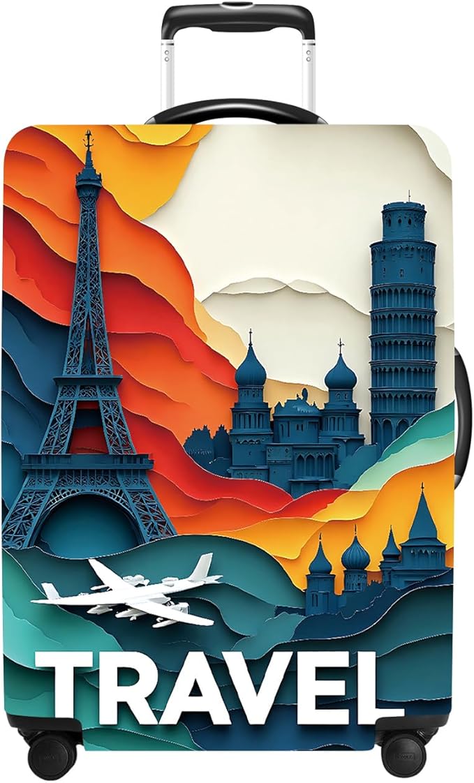 Luggage Cover Washable Suitcase Protector Anti-Scratch,Stretchable Fit for 20-34Inch Luggage Durable Travel Bag Cover with Zipper Closure (Travel-3, XL(fits 32-34Inch suitcase))