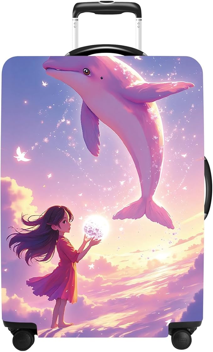 Luggage Cover Washable Suitcase Protector Anti-Scratch,Stretchable Fit for 20-34Inch Luggage Durable Travel Bag Cover with Zipper Closure (Dolphin, M(fits 24-26Inch suitcase))