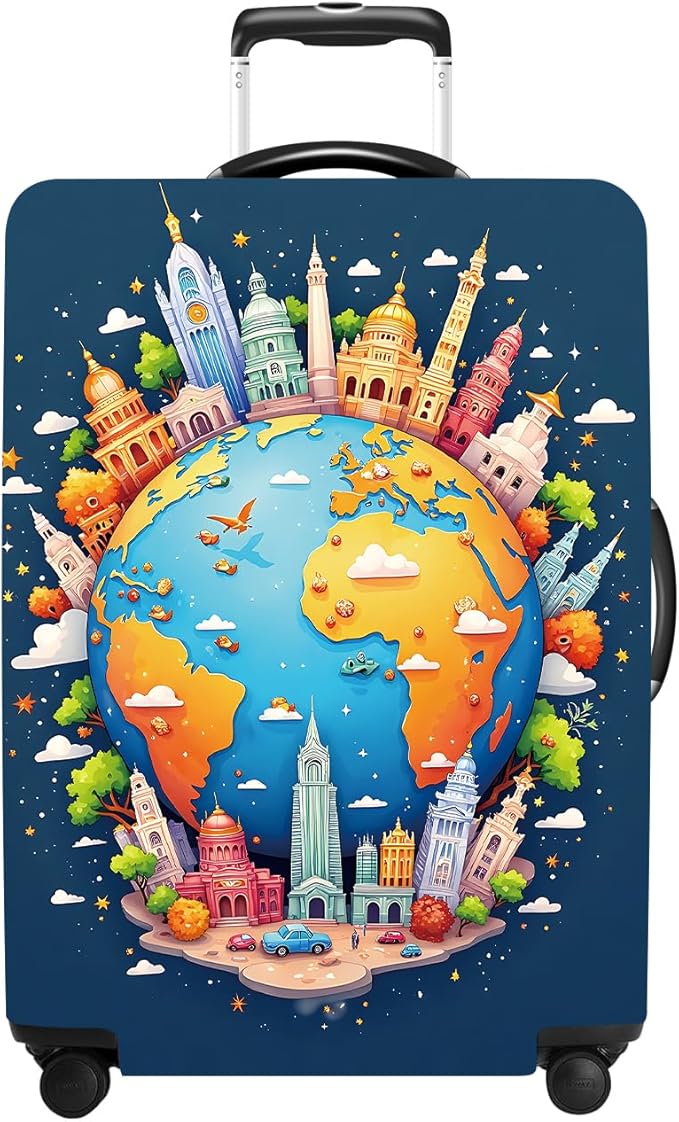 Luggage Cover Washable Suitcase Protector Anti-Scratch,Stretchable Fit for 20-34Inch Luggage Durable Travel Bag Cover with Zipper Closure (Earth, M(fits 24-26Inch suitcase))