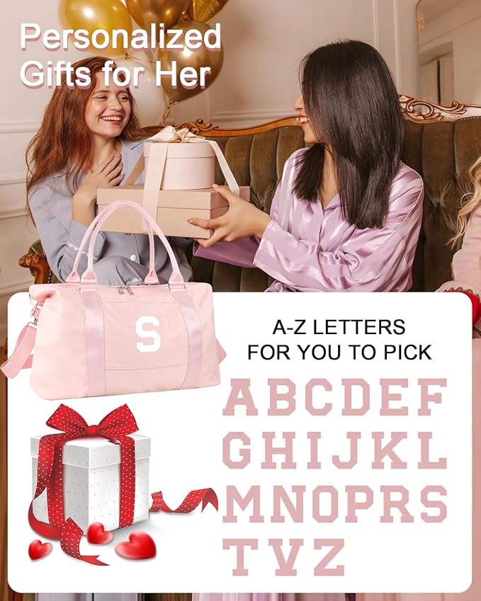 Initial Travel Duffel Bag Sports Gym Bag for Girls Teen Birthday Gifts,Pink Personalized Weekender Bag Carry On Tote Bags for Women Men,Waterproof Overnight Luggage Bag with Trolley Sleeve(Letter S)