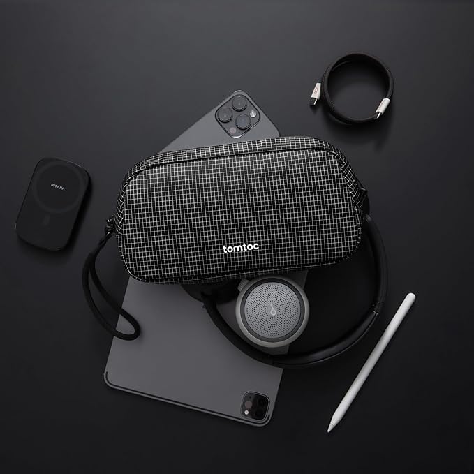 tomtoc Electronics Organizer Travel Case Performance, Water Resistant Bag Cable Tech Pouch Accessories, Carry Storage for Cord, Phone, Cables, Airpods, USB Flash Drive, Daily Items