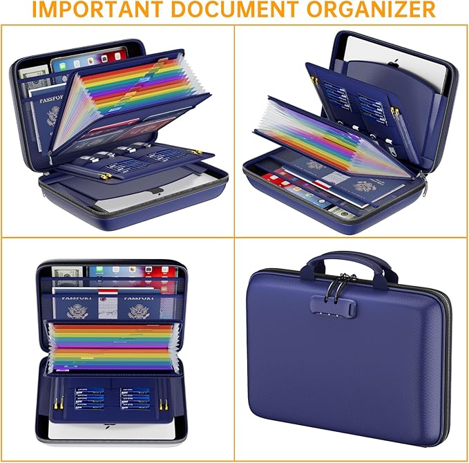 - Fireproof File Organizer with Lock: Protect your valuables with the built-in high-quality combination lock (No keys required). Featuring a double metal zipper for convenient opening and closing. Design with a strong handle for carrying everything you needed easily. The fireproof file folder is suitable for business, travel, office, school, home storage, you can be 100% sure that your important documents are in a safe place. Of course, giving it as a gift to your family is also a good choice