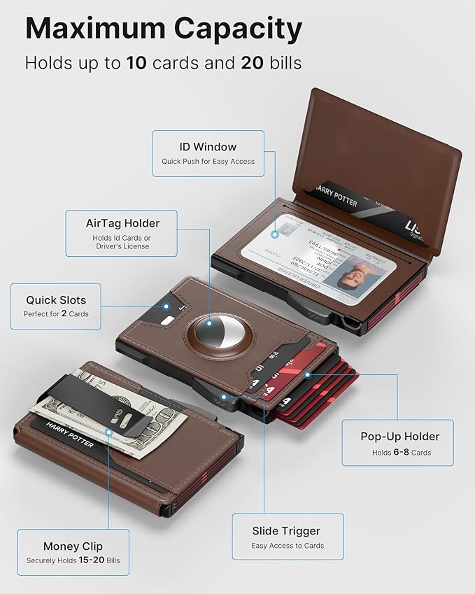- 【LARGE CAPACITY】 With 8 card slots, 1 ID window, and metal clip, this wallet has plenty of room for all your essentials. It can hold up to 13 cards and 20 bills, so you can carry everything you need without feeling weighed down.