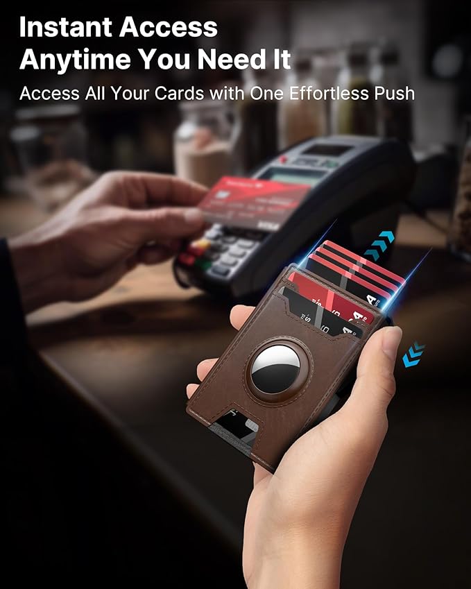 - 【SECURE AIRTAG HOLDER】Do you worry about losing your belongings when you're out and about? This wallet is designed with AirTag holes, so you can attach an AirTag to help you keep track of your wallet. The AirTag holder is secure and prevents the AirTag from drawing out, giving you peace of mind. AirTag is not included.