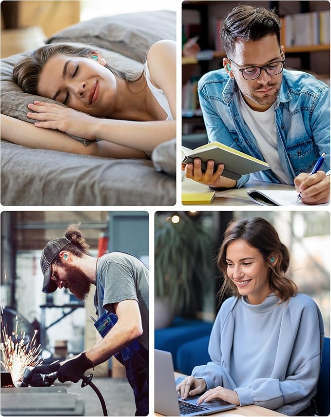 - Effective Noise Reduction: The ear plugs noise reduction have different noise-cancelling effects in different scenes (NRR 25dB to 33dB),soften the sound source and reduce noise while preserving the sound clarity and sharpness. These comfortable ear plugs for sleeping help preserve your hearing and provide you with some peace in a noisy world.