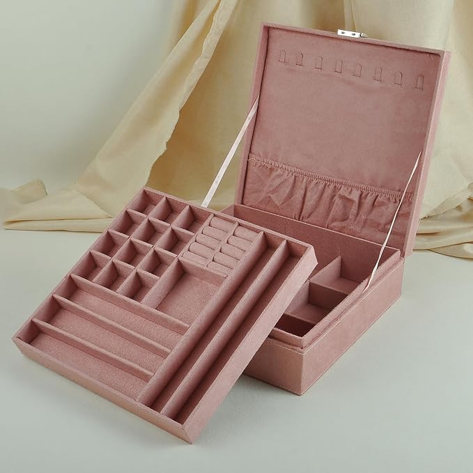 - 【LOCKABLE WITH KEY 】 ------ The Jewel Box with Handle Lock can be Locked for all Layers to keep safe from children kids to prevent accidental ingestion. . Lid Tier which can organize small accessories such as earrings and the down layer can storage large jewelry