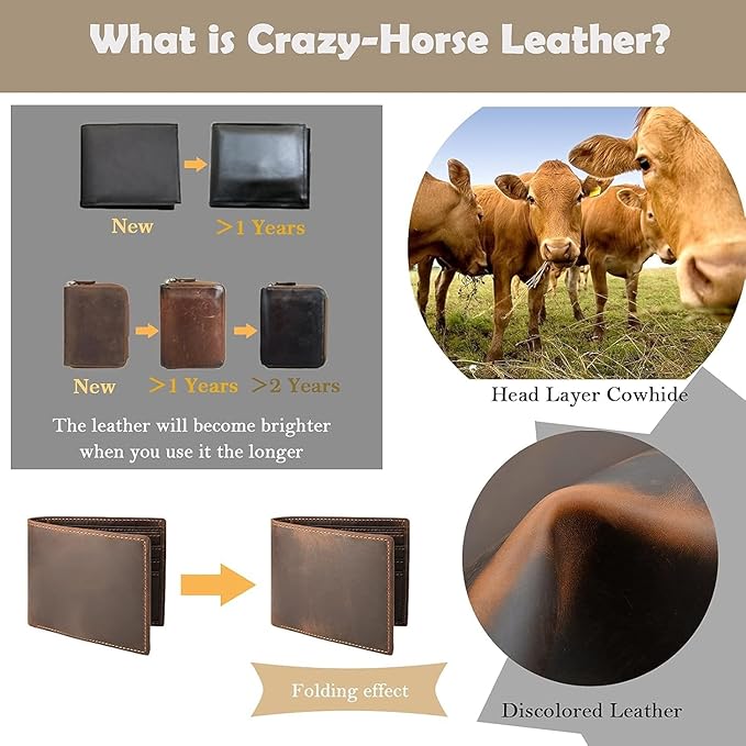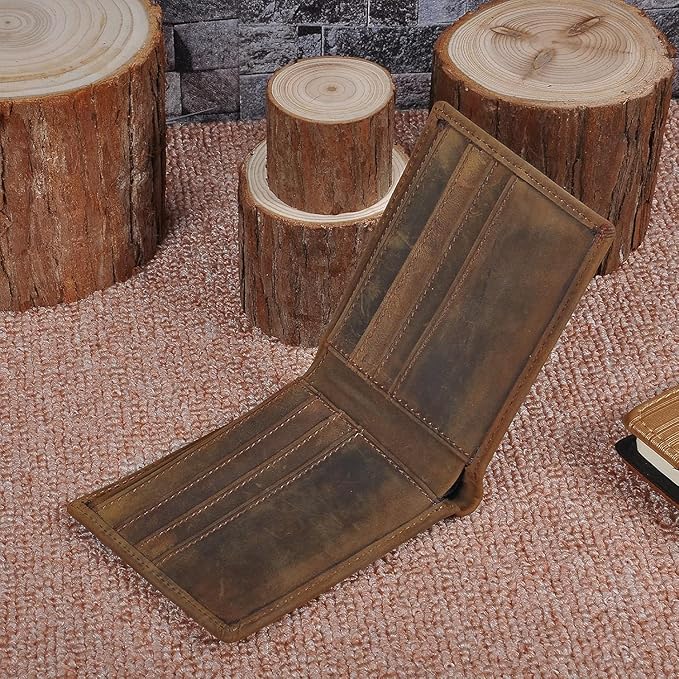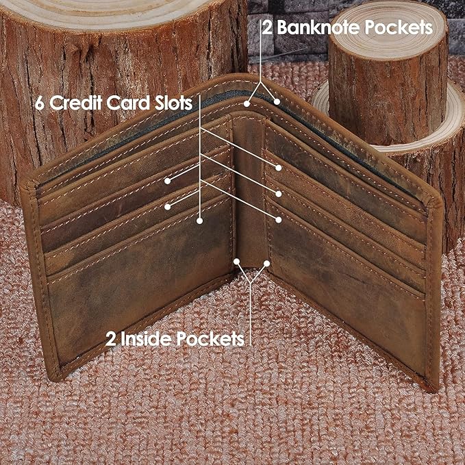 - [Genuine Italian Leather] Crafted from high-quality Italian leather, this bifold wallet features a soft, smooth texture that improves with age. The vintage finish gives it a timeless, distinguished look that complements both casual and formal attire.
