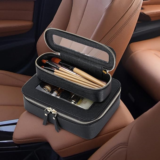 - [Waterproof Premium Material ] – This travel makeup bag set was made with the same durable saffiano Faux Leather inside and outside, along with a metal zipper, ensuring it retains its shape and effectively protects your belongings.