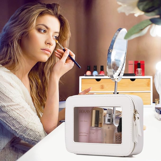 - [Clear makeup bag]: This clear cosmetic bag features a medium size (8.07" * 5.9" * 2.75"), providing ample space for all your cosmetics and toiletry items. It is ideal for travel, fitting perfectly in your carry-on or suitcase.
