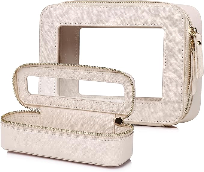 - [Waterproof Premium Material ] – This travel makeup bag set was made with the same durable saffiano Faux Leather inside and outside, along with a metal zipper, ensuring it retains its shape and effectively protects your belongings.